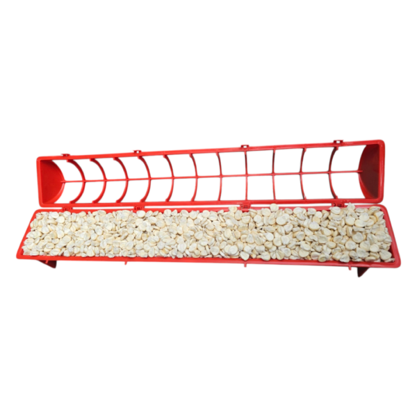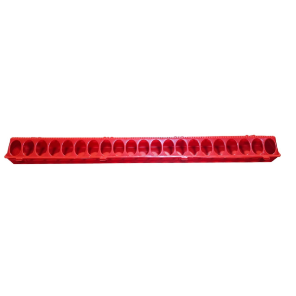 COMEDERO RECTANGULAR PARA AVES POLLOS 1 METRO 42 HUECOS ROJO