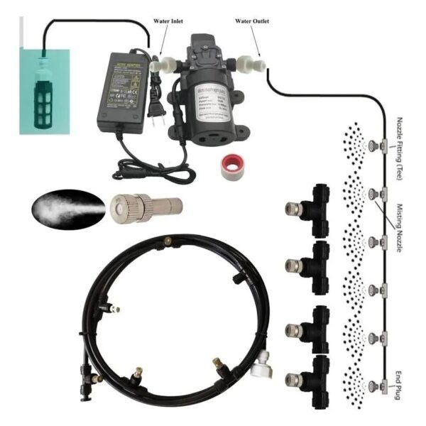 KIT SISTEMA DE NEBULIZACION CON BOMBA 11 BOQUILLA ATOMIZADOR