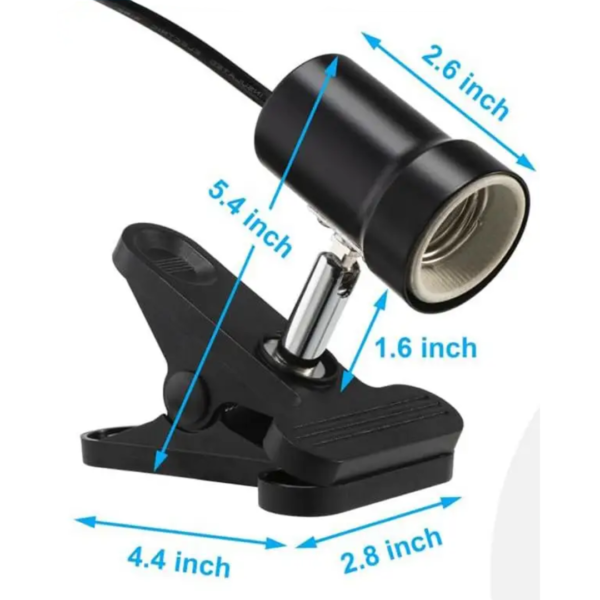 Lámpara con clip: Sujeción firme para instalar en bordes de jaulas, criaderos o estructuras.