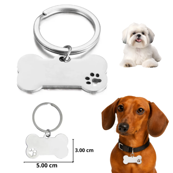 PLACA DIJE IDENTIFICACIÓN PARA MASCOTAS EN ACERO INOXIDABLE + PERSONALIZADO