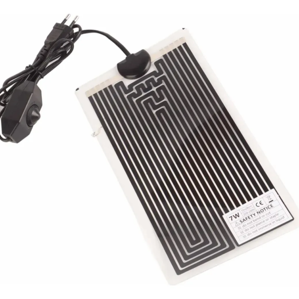 ALFOMBRA CALEFACTORA ELÉCTRICA PARA MASCOTAS Y REPTILES 15X28CM – 7W Ideal para brindar calor constante y seguro a animales pequeños