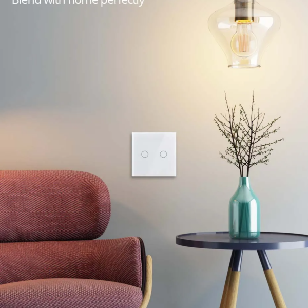SWITCH INTERRUPTOR TÁCTIL PARED BLANCO 2 BOTONES SIN NEUTRO