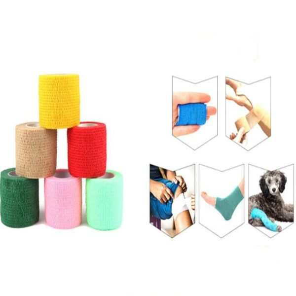 Este vendaje es una cinta no adhesiva que se pega a sí mismo, sin necesidad de pines u otras cintas para mantenerlo unido. Es ideal para aplicar compresión a los músculos lesionados, ya que no se pega a la piel o al cabello.
