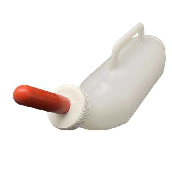 BIBERÓN PARA ganado CON TETINA ROJA – 1 LITRO Diseñado para la alimentación manual de animales recién nacidos, este biberón