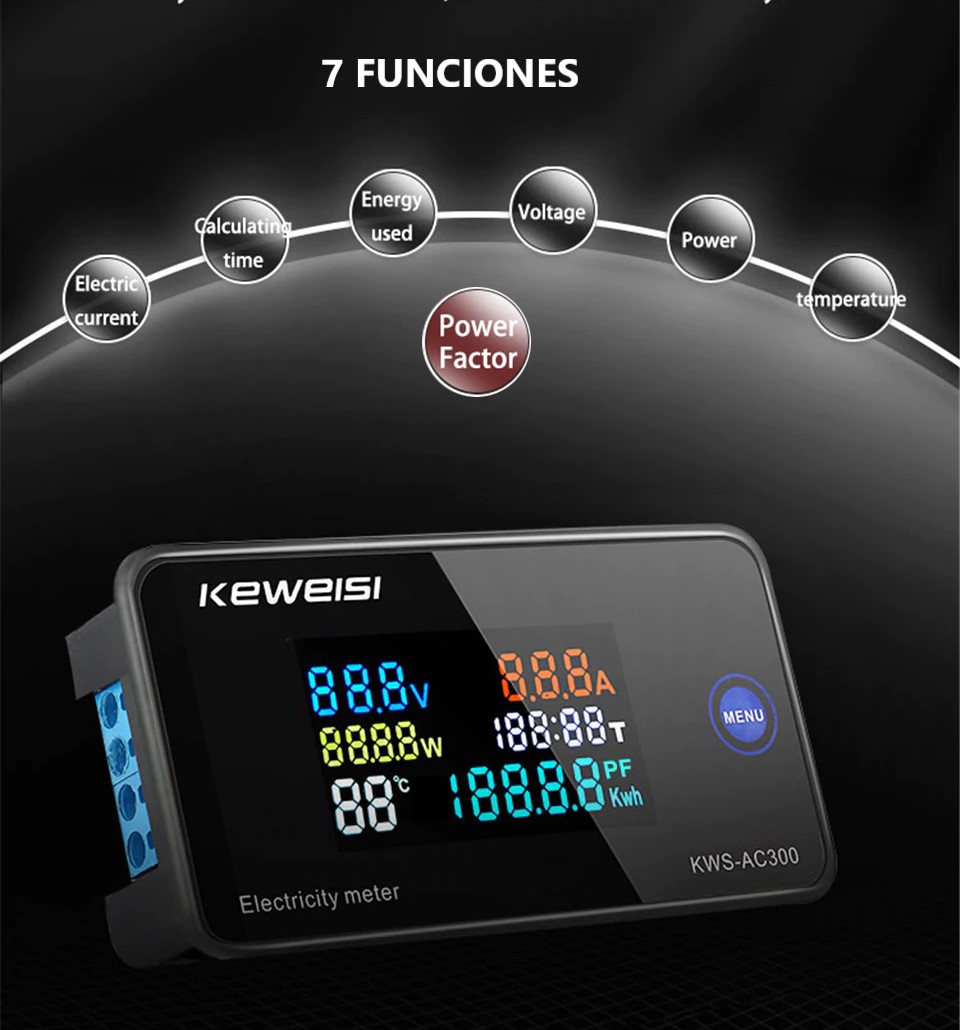 AMPERIMETRO VOLTIMETRO VATIMETRO DIGITAL 7 FUNCION KWS-AC300
