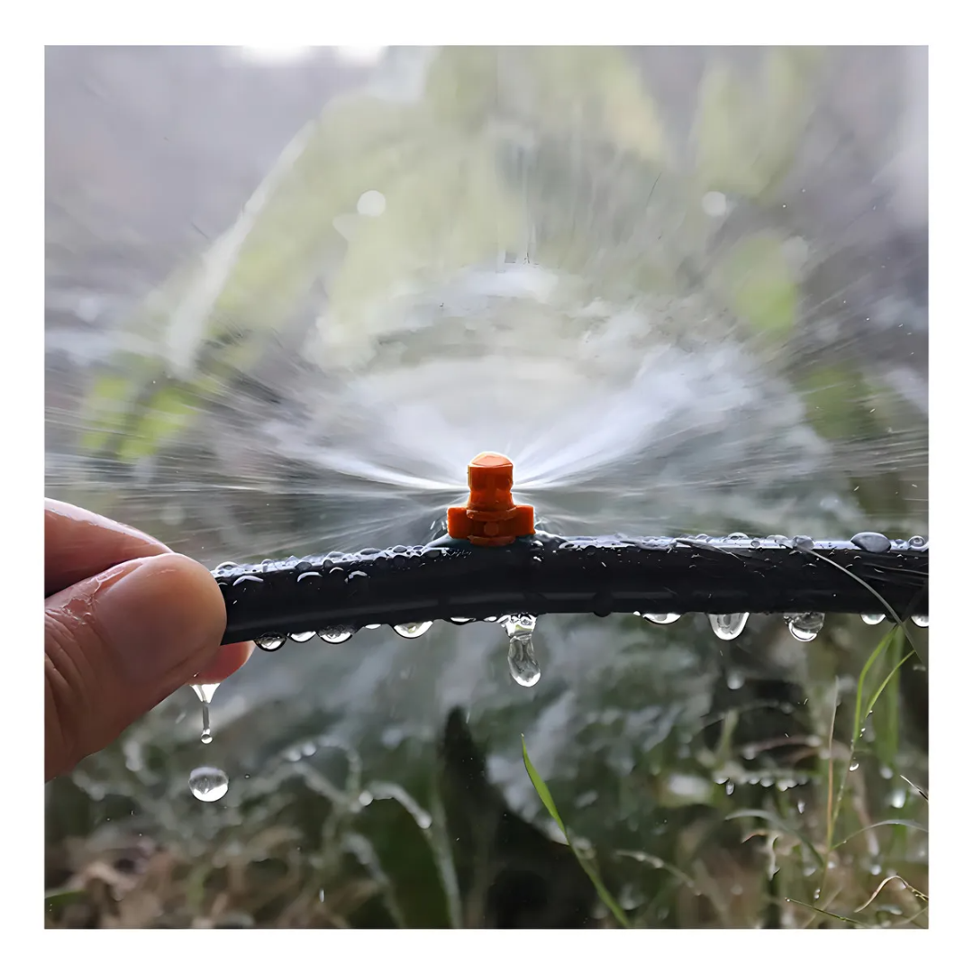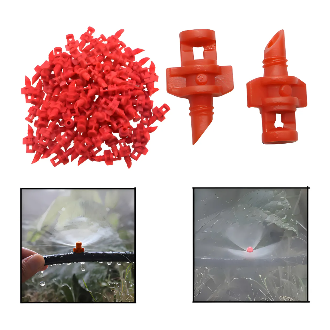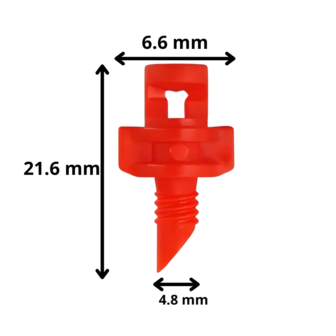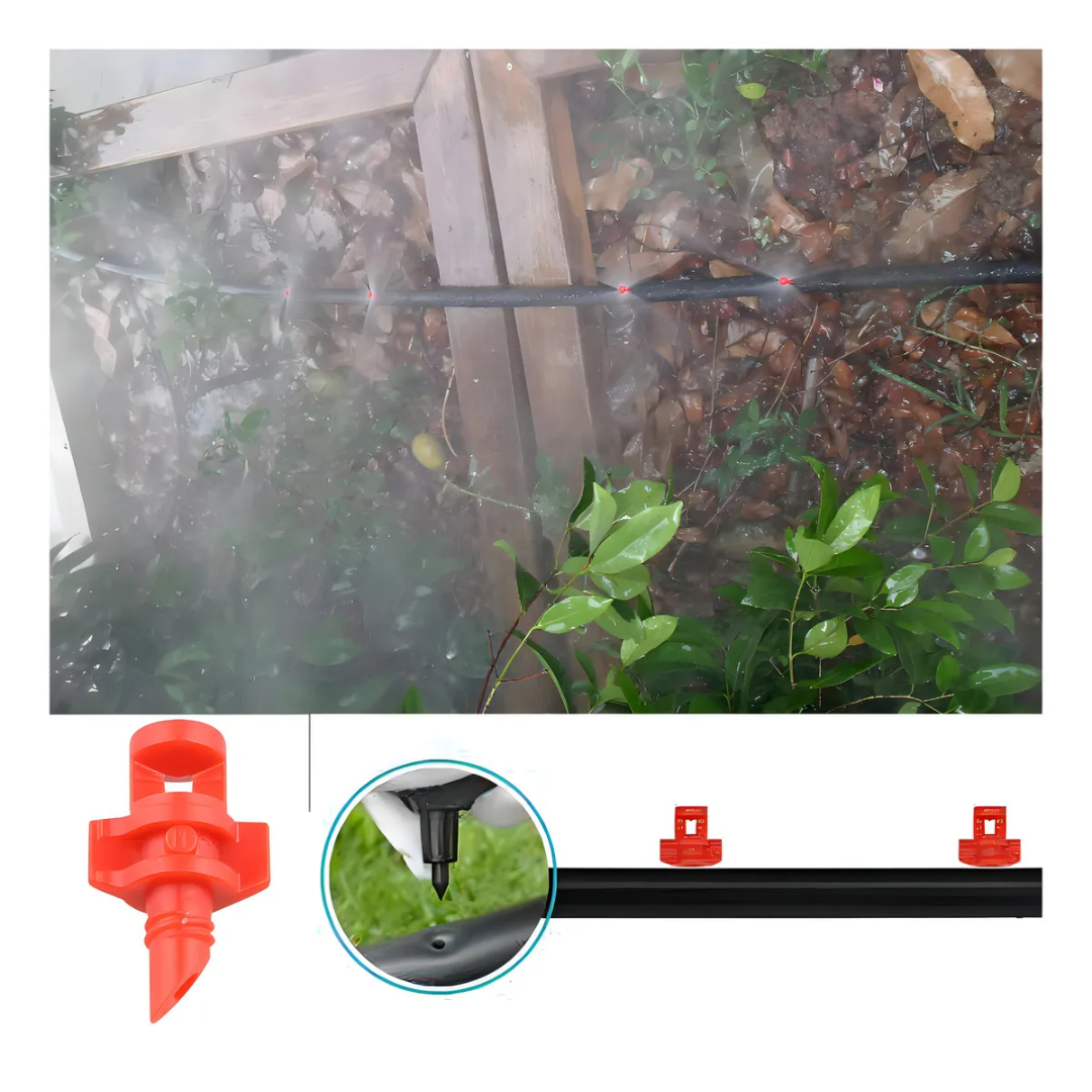 Boquilla nebulizadora tipo spray diseñada para sistemas de riego, microaspersión y control de humedad. Proporciona una pulverización uniforme de 180°, ideal para invernaderos, viveros, jardines, galpones, corrales y sistemas de enfriamiento ambiental.