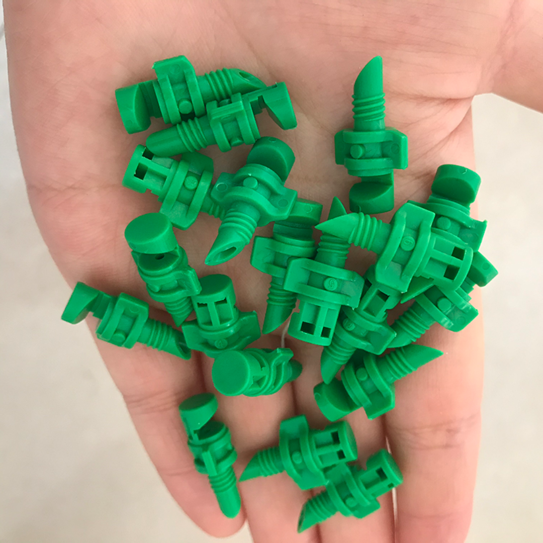 Fabricada en plástico de alta resistencia, soporta trabajo continuo bajo presión, ofreciendo un caudal estable y eficiente. Su diseño compacto permite una instalación rápida y segura en sistemas de riego por goteo o microtubo.