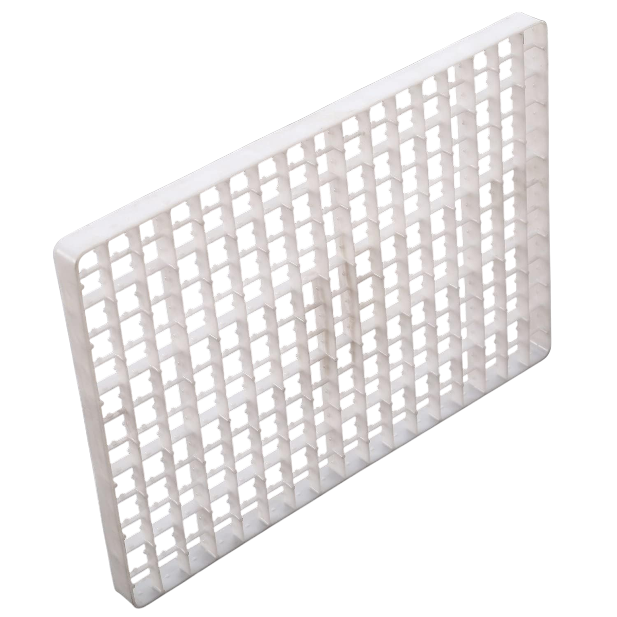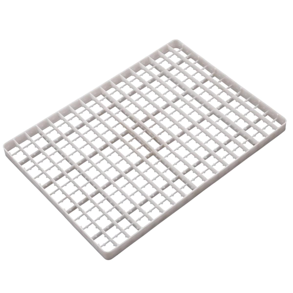 Bandeja plástica para incubadora, diseñada para almacenamiento y volteo de huevos en sistemas de incubación. Su estructura de alta resistencia permite colocar hasta 221 huevos de manera segura y ordenada.