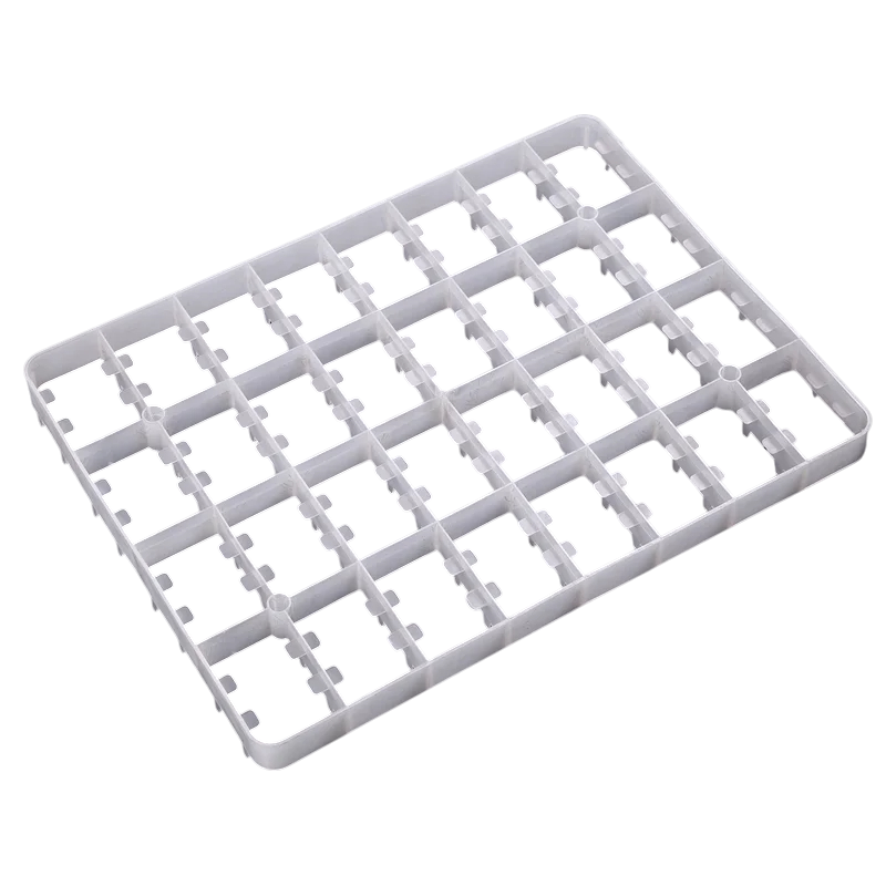 Bandeja plástica para incubadora, especialmente diseñada para huevos grandes como los de ganso. Su estructura reforzada permite colocar hasta 32 huevos de ganso de forma segura y estable.