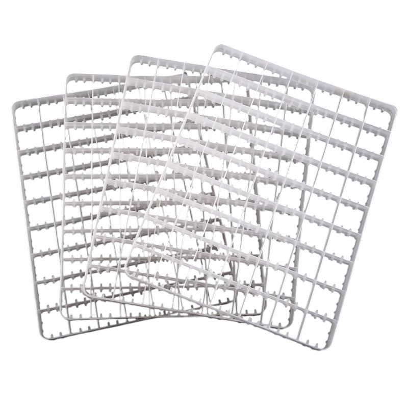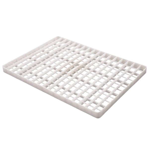 El diseño de rejilla garantiza una adecuada circulación de aire, favoreciendo la incubación uniforme y aumentando la tasa de eclosión. Fabricada en plástico resistente y reutilizable, es fácil de lavar, ligera y compatible con incubadoras automáticas y manuales.