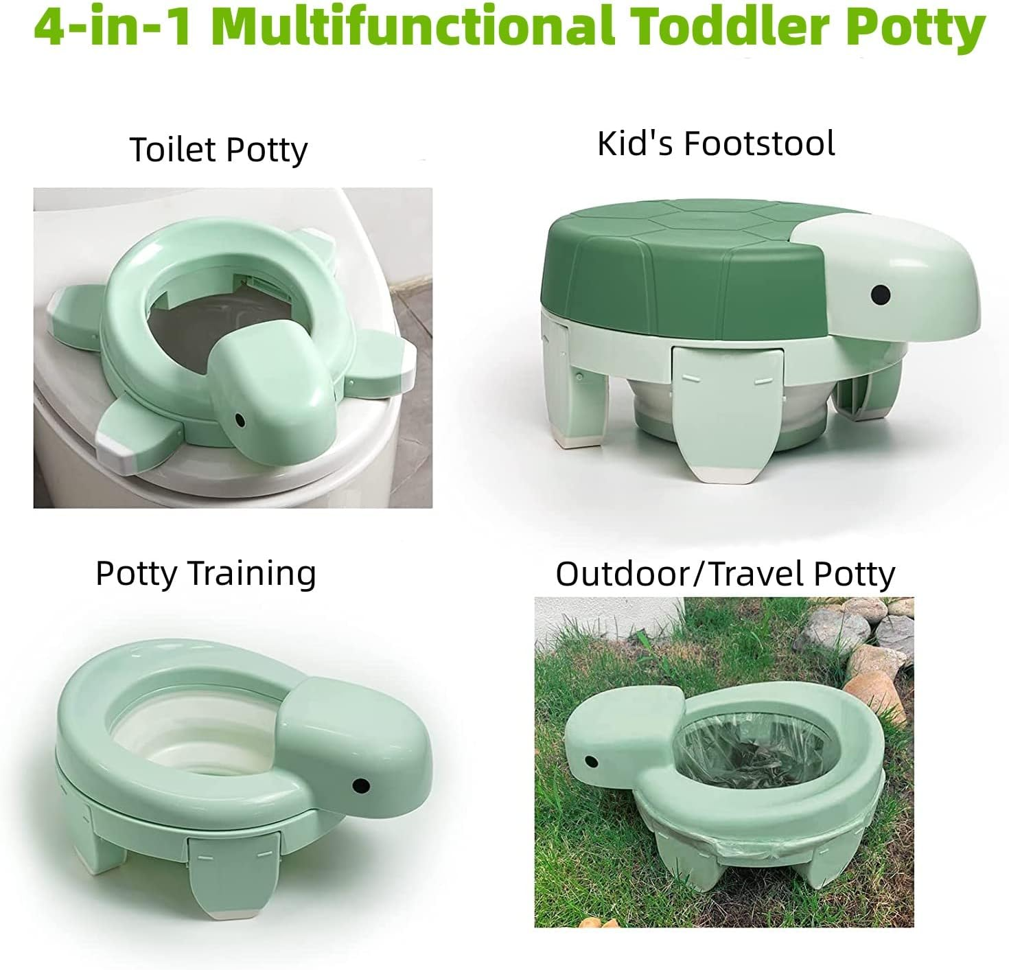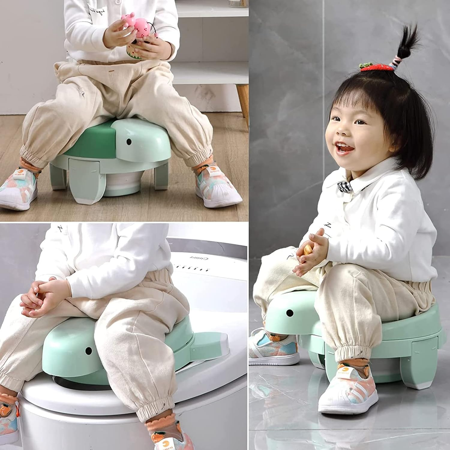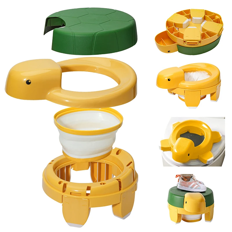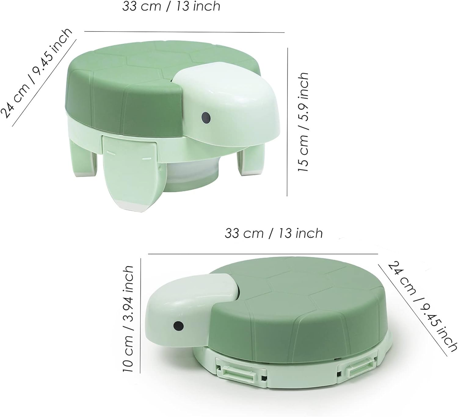 Ideal para etapa de entrenamiento, viajes, uso en casa o como asiento auxiliar. Diseño en forma de tortuga, cómodo, seguro y fácil de limpiar. Se puede usar como bañito portátil o como banquito para apoyar los pies.