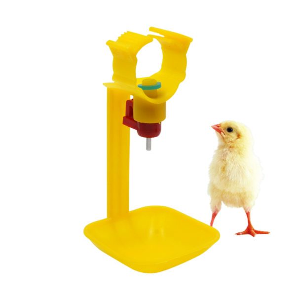 Bebedero automático tipo copa diseñado para suministro controlado de agua limpia, ideal para pollos, gallinas, codornices, patos y otras aves de corral. Su sistema de niple metálico permite que el agua fluya únicamente cuando el ave acciona el mecanismo, reduciendo desperdicios y manteniendo el área seca e higiénica.