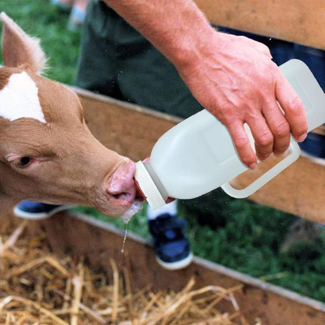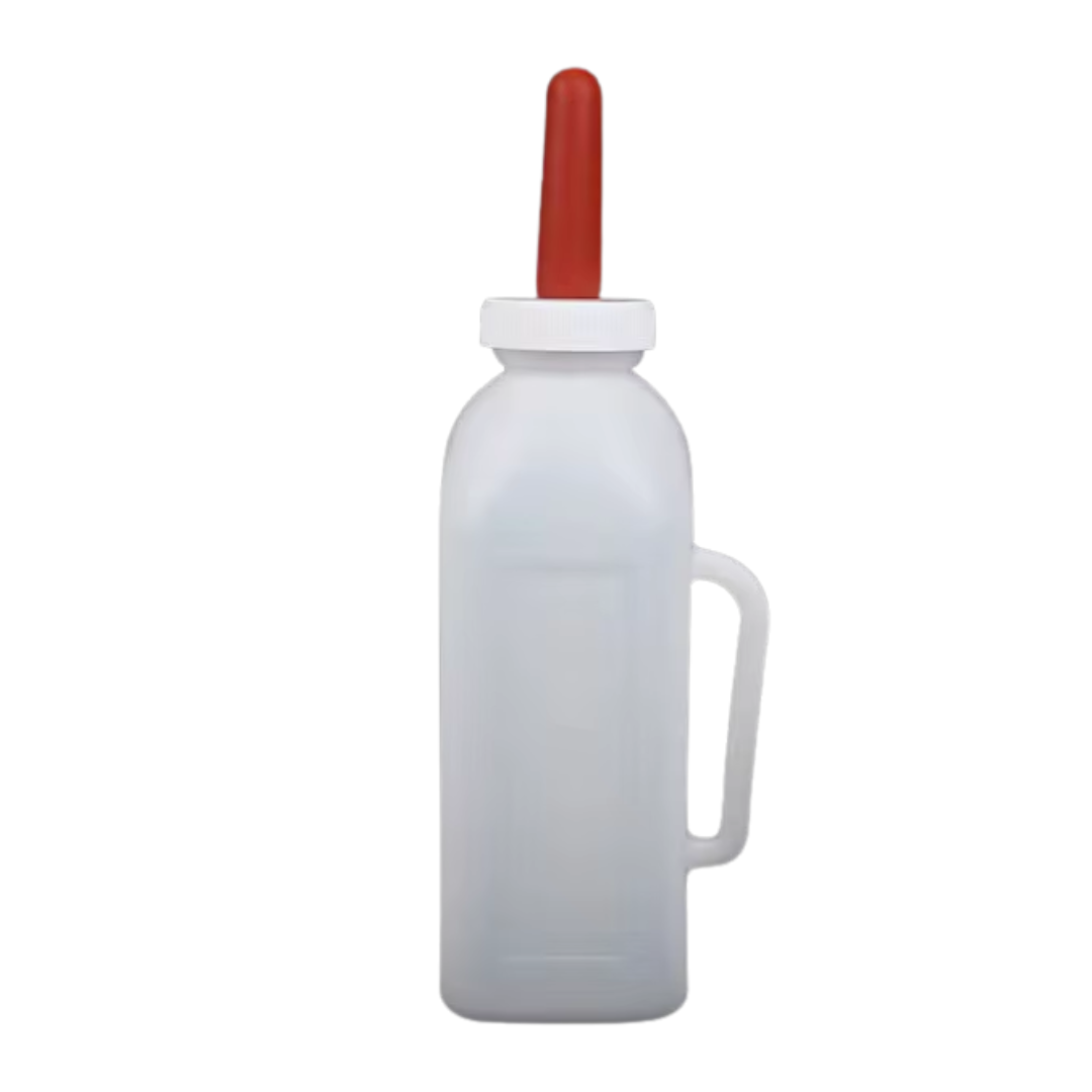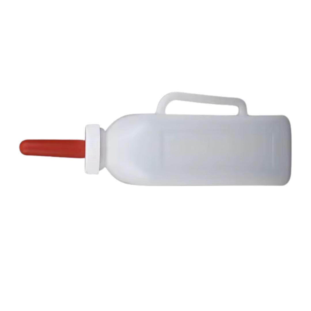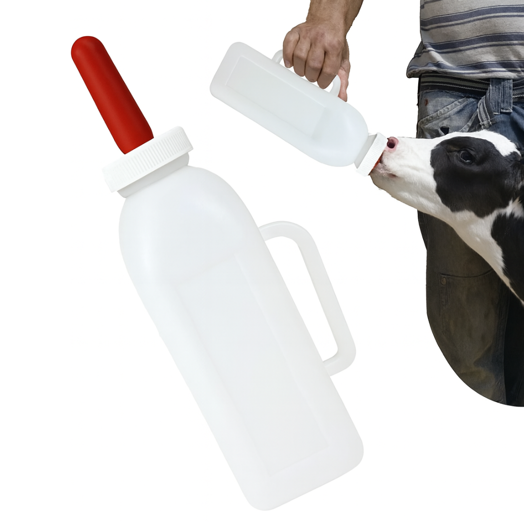 Diseñado para la alimentación de terneros, cabritos, corderos y otros animales jóvenes, este biberón agrícola facilita una nutrición segura, higiénica y controlada. Su estructura resistente y su diseño ergonómico con asa lateral permiten un manejo cómodo, mientras que la tetina flexible roja imita la sensación natural de amamantamiento.