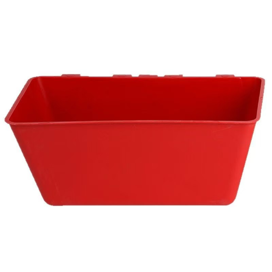 Su diseño rectangular con ganchos de sujeción traseros permite fijarlo fácilmente a jaulas, cercos o estructuras, evitando volcados y desperdicio. Ideal para gallinas, pollos, codornices, patos y otras aves de corral.