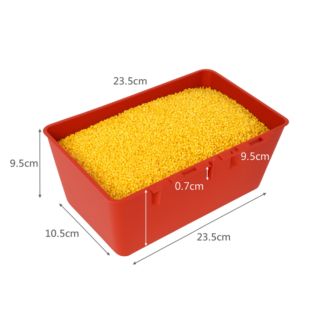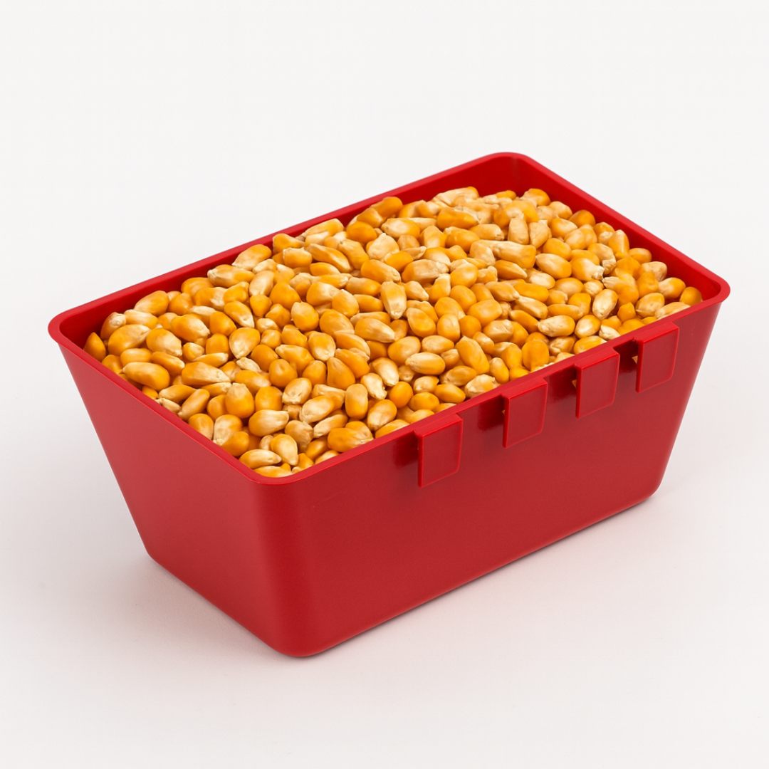Práctico y resistente comedero o bebedero para aves, diseñado para uso avícola intensivo. Fabricado en plástico PP de alta densidad, ofrece durabilidad, fácil limpieza y una excelente capacidad para suministrar granos, alimento balanceado o agua.