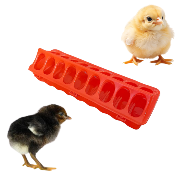 COMEDERO RECTANGULAR PARA POLLOS AVES 50CM 28 HUECOS