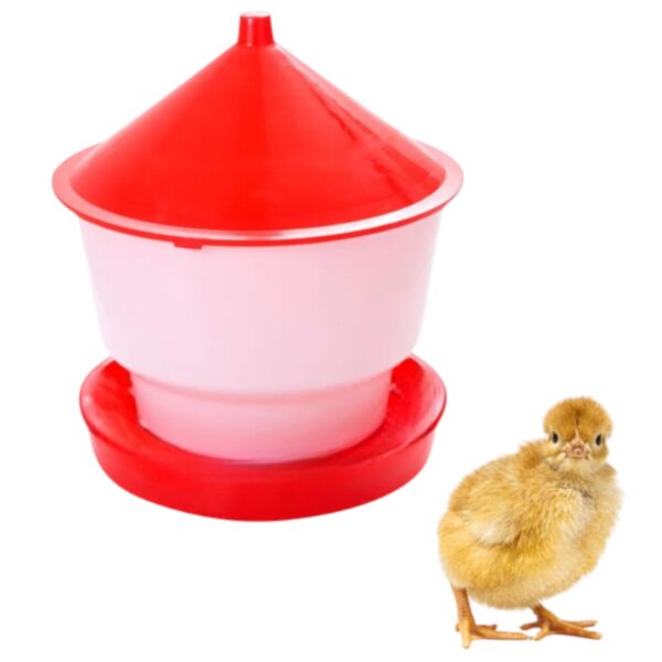 Comedero compacto fabricado en plástico PP de alta densidad, ideal para alimentar gallinas, pollos, patos o codornices. Su diseño circular con aberturas amplias distribuye el alimento de manera uniforme y evita derrames, ofreciendo una alimentación limpia, ordenada y sin desperdicios.