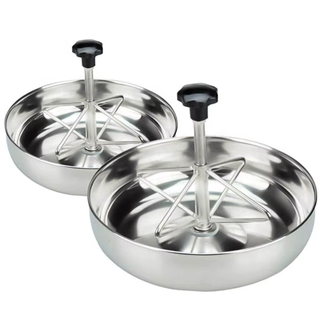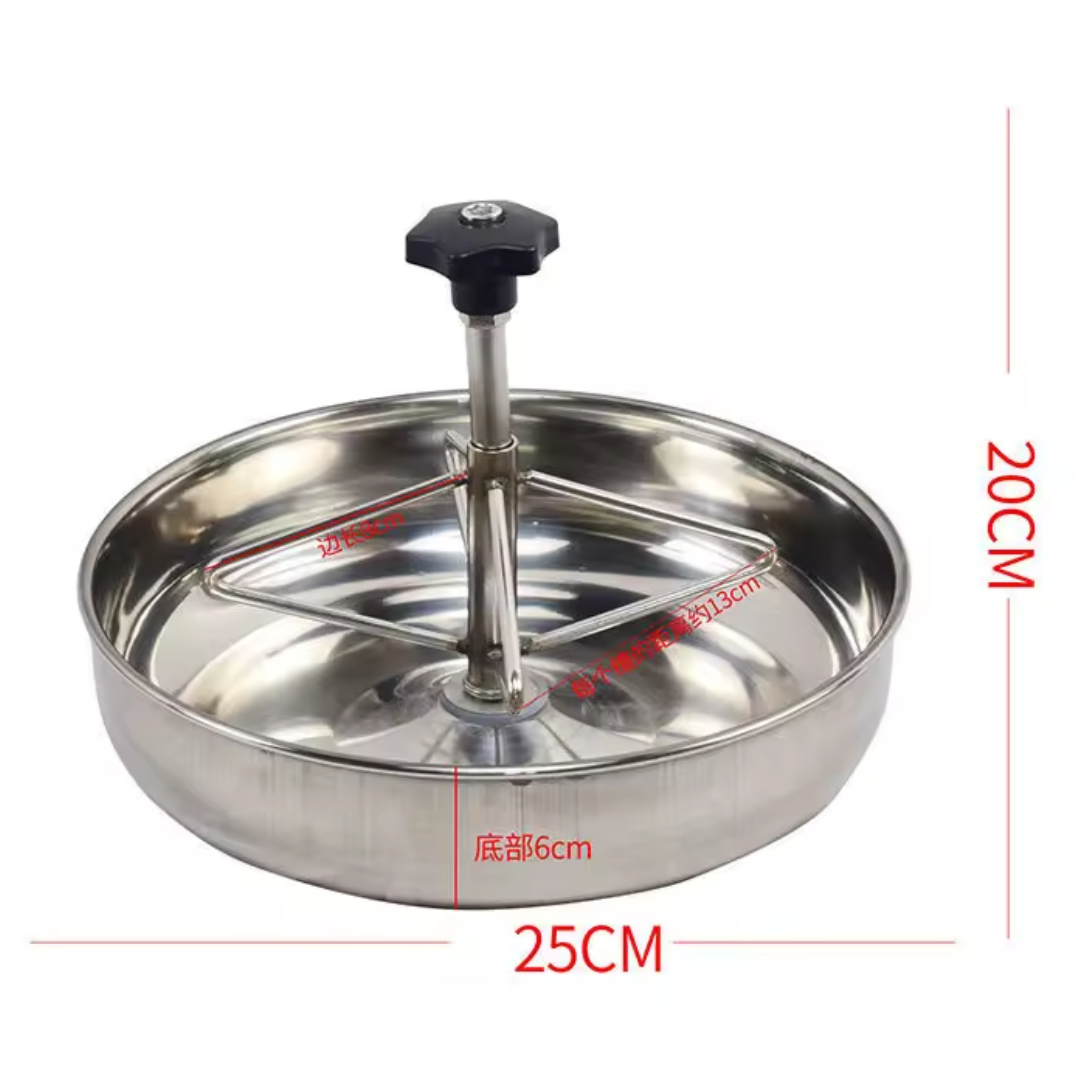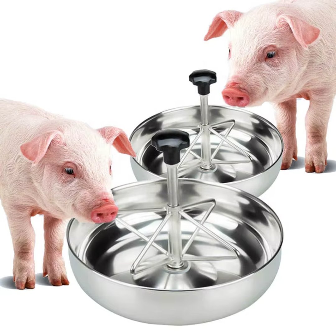 Comedero circular de 4 bocas para lechones, fabricado en acero inoxidable. Ideal para lactancia y destete: reparte el alimento en porciones iguales, reduce peleas y desperdicio, y se limpia en minutos. El separador en forma de estrella guía a cada animal a su puesto y la perilla superior facilita el transporte.