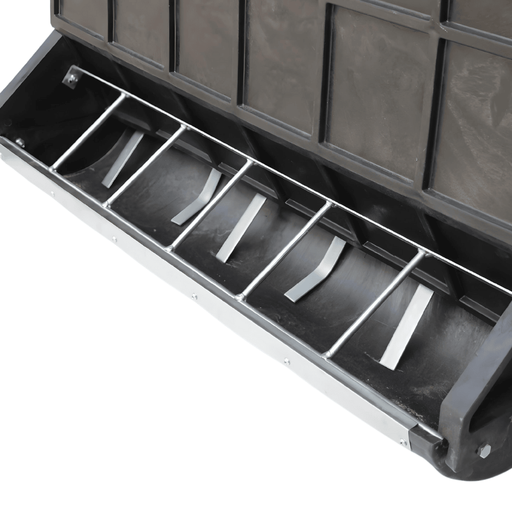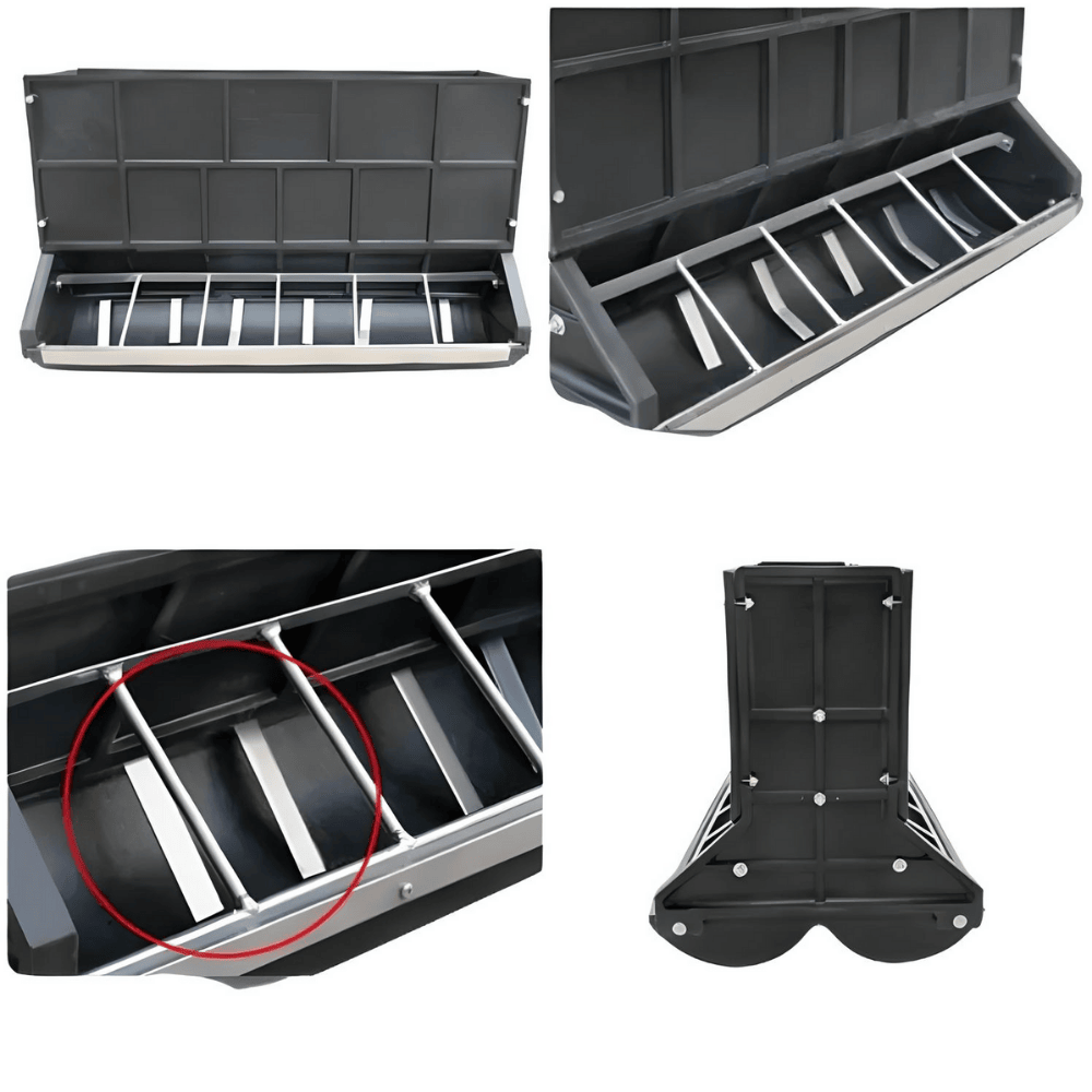 Su estructura robusta incluye divisiones internas que evitan la competencia entre los animales, garantizando una mejor distribución del alimento. Además, su superficie lisa facilita la limpieza y desinfección, contribuyendo a mantener una excelente higiene en el corral.