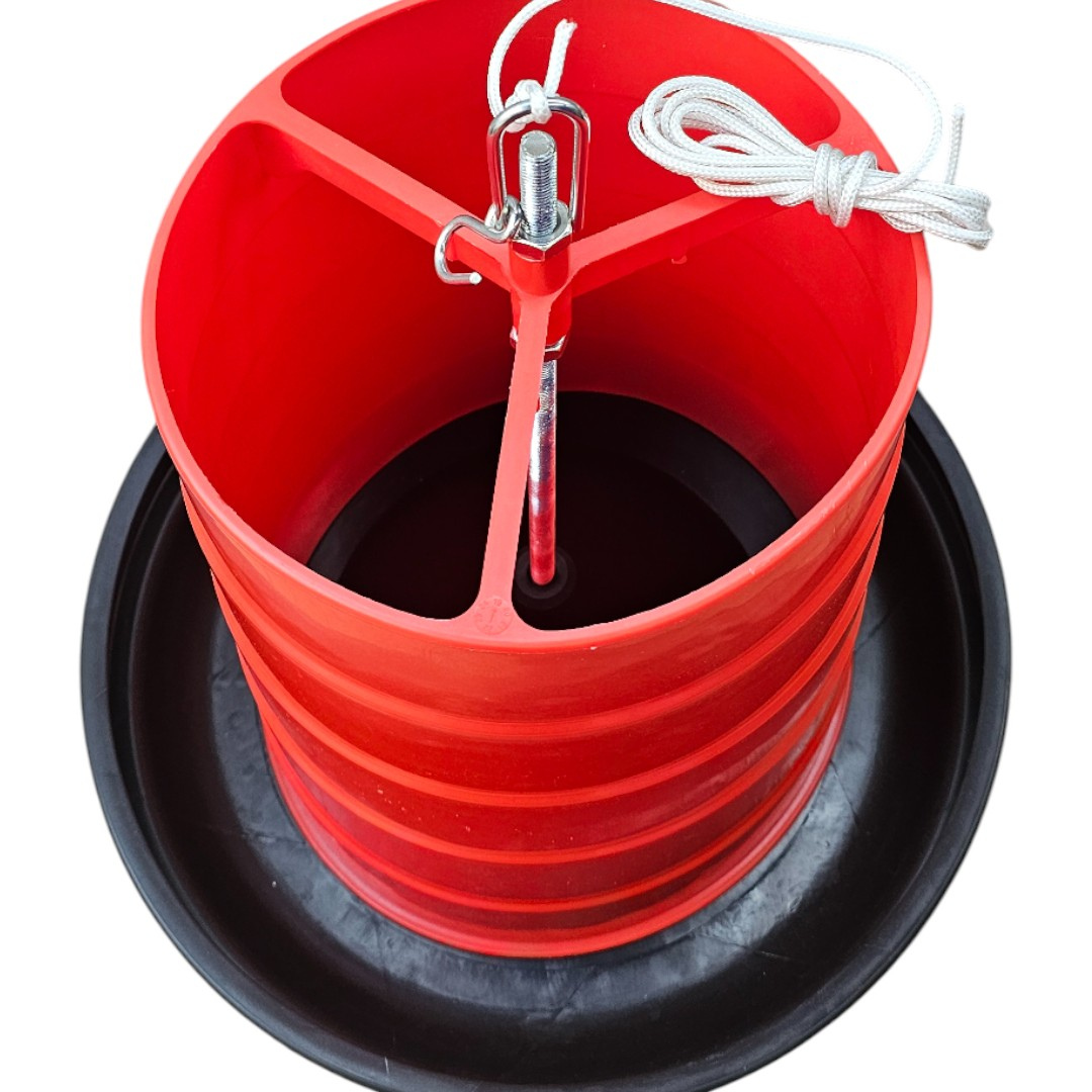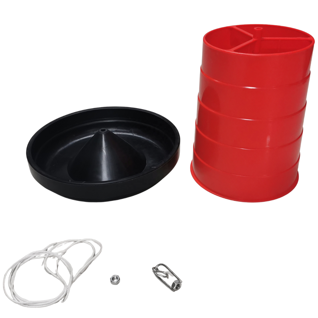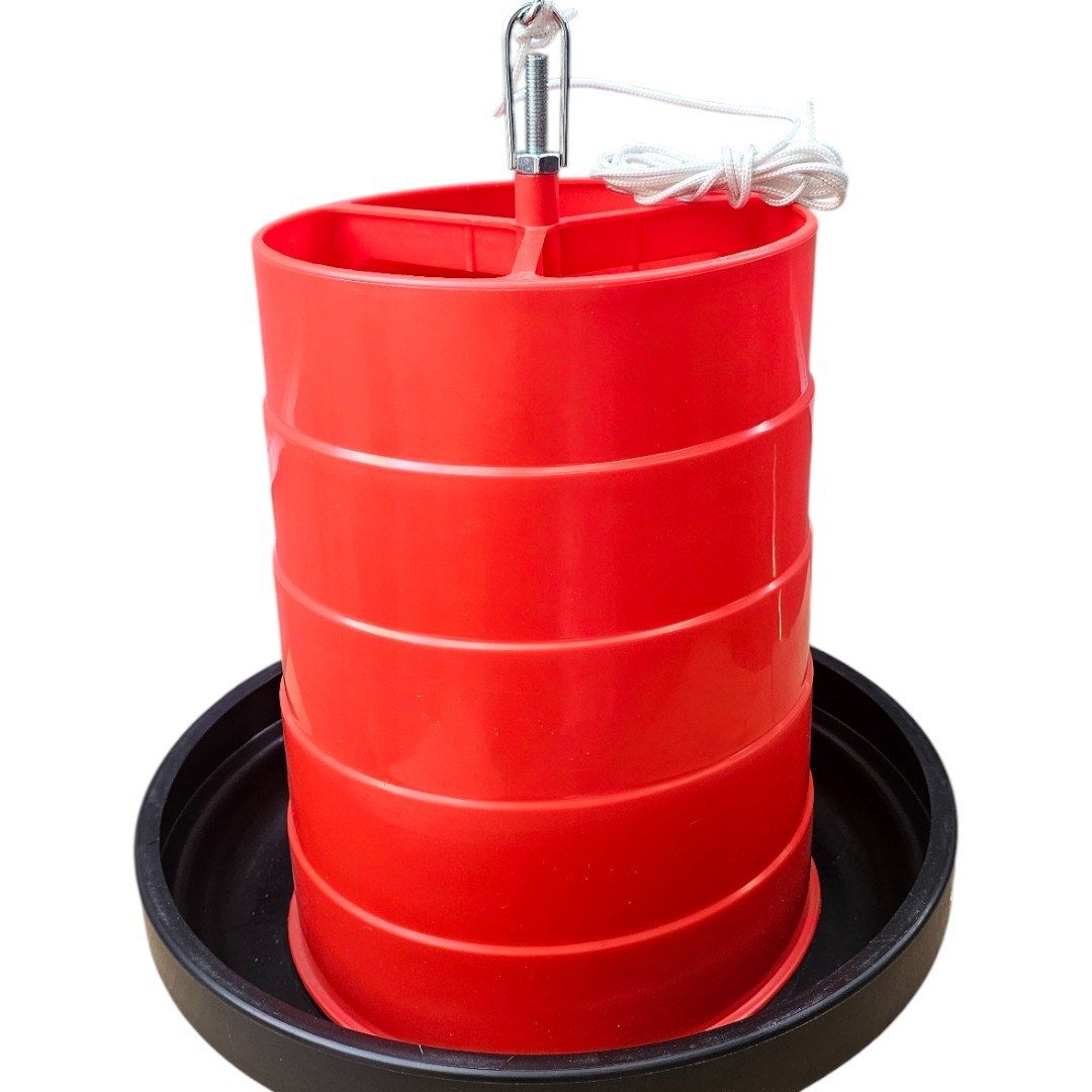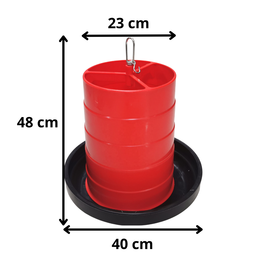 Comedero automático diseñado para pollos, gallinas y aves de corral, fabricado en plástico PP de alta resistencia. Su sistema por gravedad mantiene el alimento limpio, seco y disponible en todo momento, reduciendo el desperdicio y facilitando una alimentación constante.
