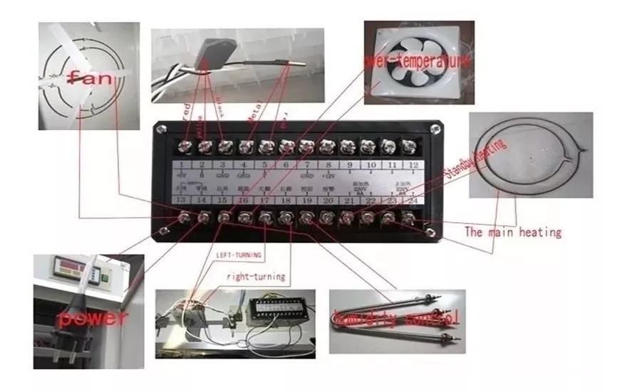 5.Número de salida de señal: 7 (sobretemperatura, control de temperatura, temperatura insuficiente, giro a la izquierda del huevo, giro a la derecha del huevo, control de humedad, alarma)