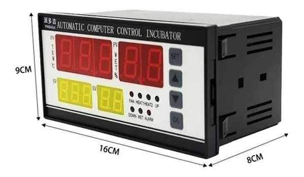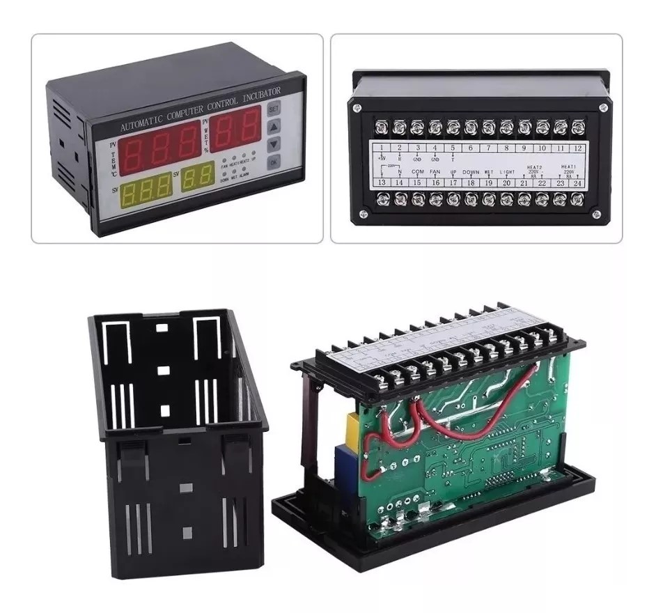 6.La corriente de carga de salida máxima: control de temperatura, temperatura insuficiente = 8A / AC220V, sobretemperatura, giro a la izquierda del huevo, giro a la derecha del huevo, control de humedad, alarma = 1A / AC22