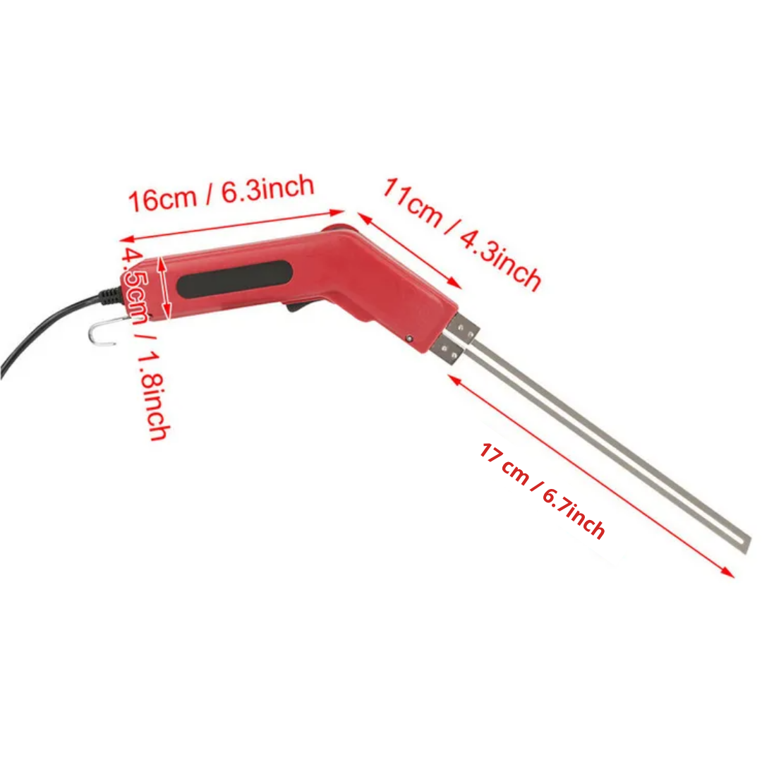 Cortador eléctrico de alta precisión ideal para trabajos con tecnopor, espuma, poliestireno y materiales similares. Su cuchilla de 17 cm se calienta rápidamente, permitiendo cortes limpios, sin residuos ni deformaciones.