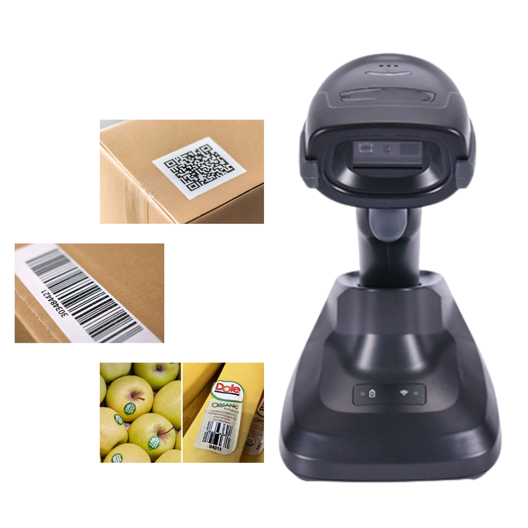 Escáner profesional con tecnología CMOS Bluetooth, ideal para puntos de venta, almacenes, supermercados y oficinas que requieren alta velocidad, precisión y libertad de movimiento.