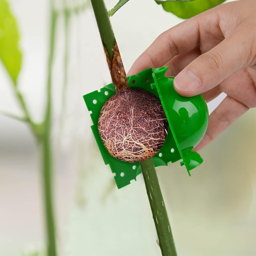 Esfera diseñada para enraizamiento aéreo, ideal para clonación, injertos y propagación de plantas sin necesidad de cortar la rama. Permite mantener humedad constante alrededor del tallo, favoreciendo un desarrollo rápido y saludable de raíces.