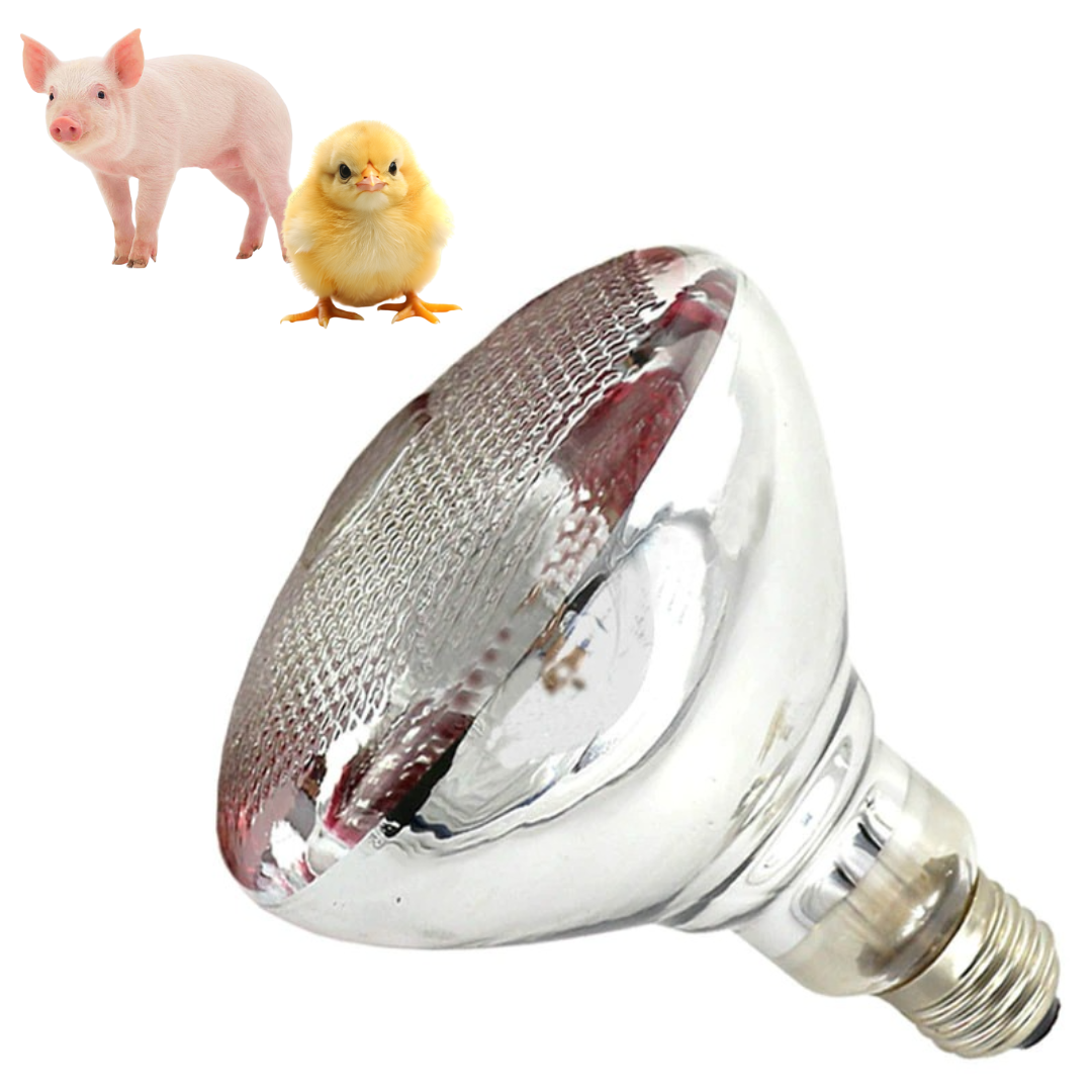 Foco infrarrojo especialmente diseñado para proporcionar calor constante a animales recién nacidos como pollitos, lechones, patitos, conejos y otros animales pequeños. Ideal para criaderos, incubadoras y zonas de maternidad, ayudando a mantener una temperatura estable y confortable durante las primeras etapas de vida.