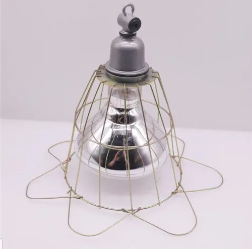 FOCO INFRARROJO CON SOCKET CERÁMICO Y PROTECTOR DE MALLA. Ideal para crianza y recuperación de animales (pollitos, aves de corral, conejos, cuyes, mascotas, reptiles) y para mantener zonas cálidas en jaulas o corrales.