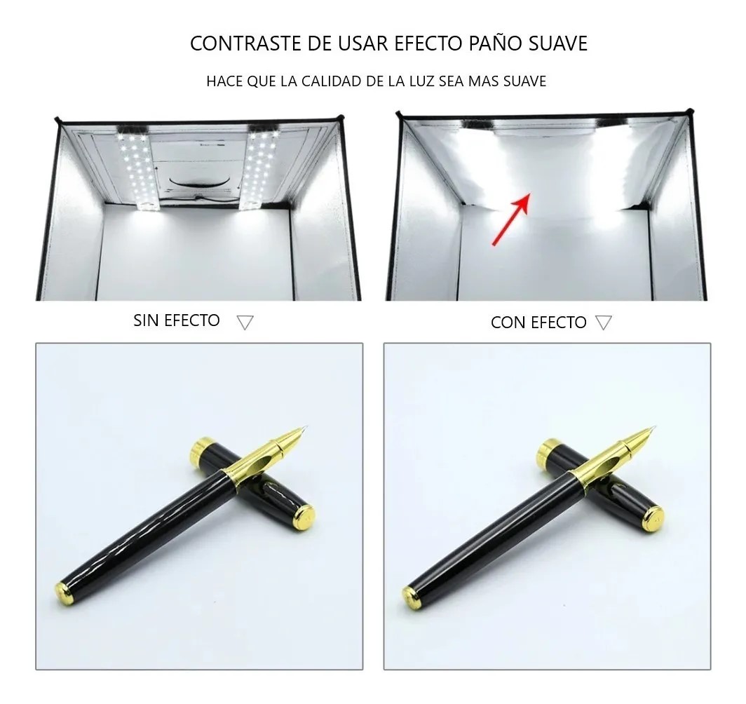 – Luz de 5500LM, superbrillante para proporcionar la fuente de luz adecuada. Esta luz combinada con el interior plateado reflectante de la tienda, proporciona iluminación uniforme para minimizar las sombras. Tu foto estará con fondo blanco puro y ni siquiera necesitas tener la foto copeada.