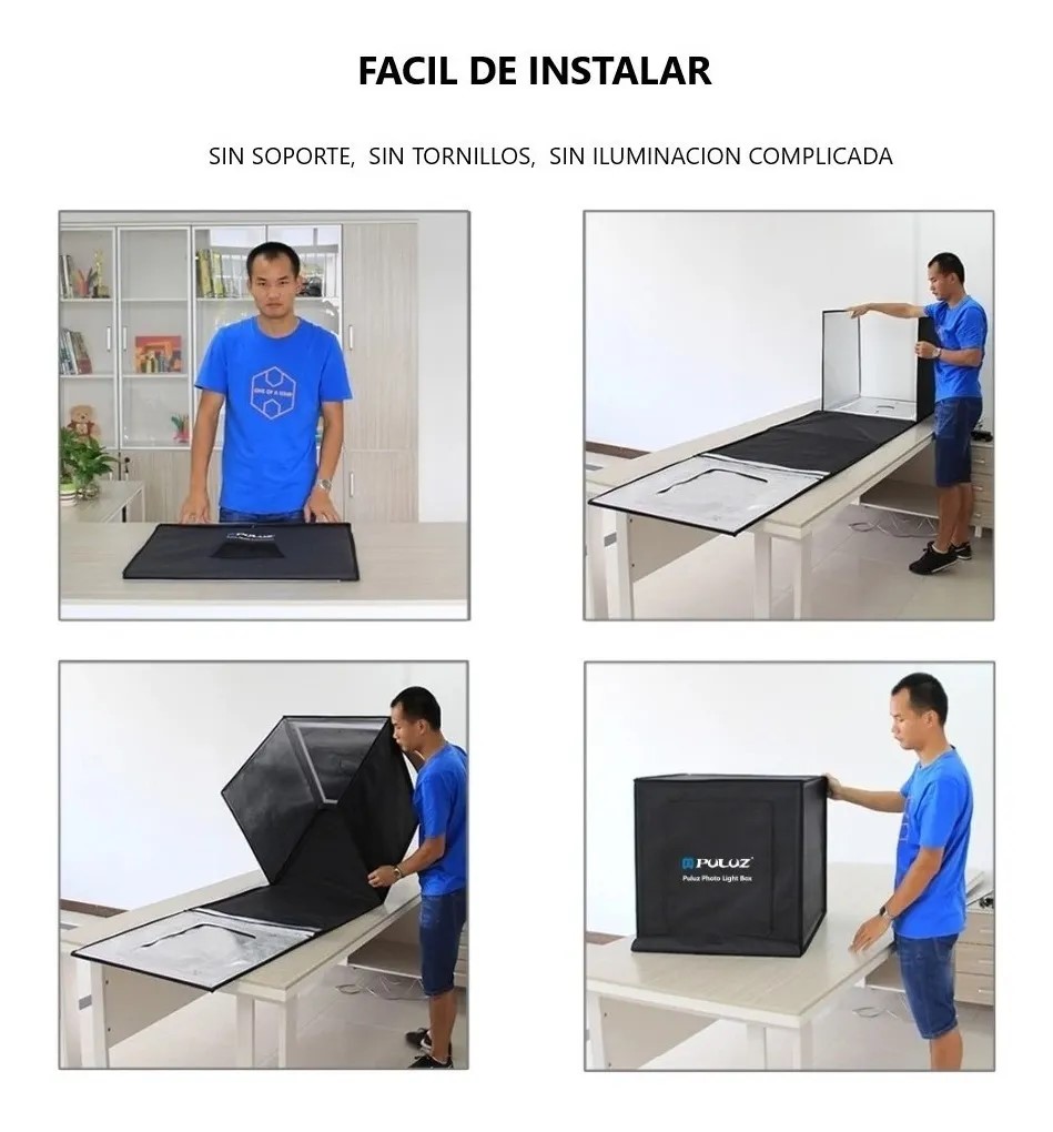 – Estudio portátil todo en uno fácil de usar. No se necesitan otras herramientas para la instalación y desinstalación. Ahorro de espacio y muy flexible. Se puede utilizar en varias ocasiones o en diferentes lugares.