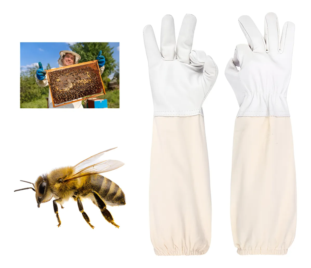 GUANTES DE CUERO PARA APICULTURA – PROTECCIÓN COMPLETA DE BRAZO Y MANO
