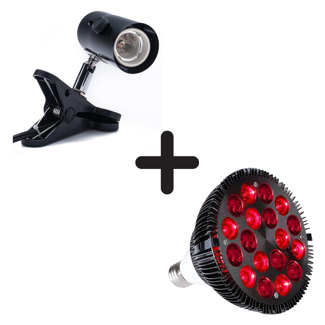 KIT LÁMPARA CON CLIP CALEFACCIÓN SOCKET E27 + FOCO LED INFRARROJO 18W