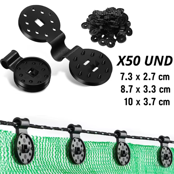 PACK X50 CLIP SUJETADOR BROCHE PARA MALLA RASCHEL / TELA ARPILLERA S/60.10 – S/78.90