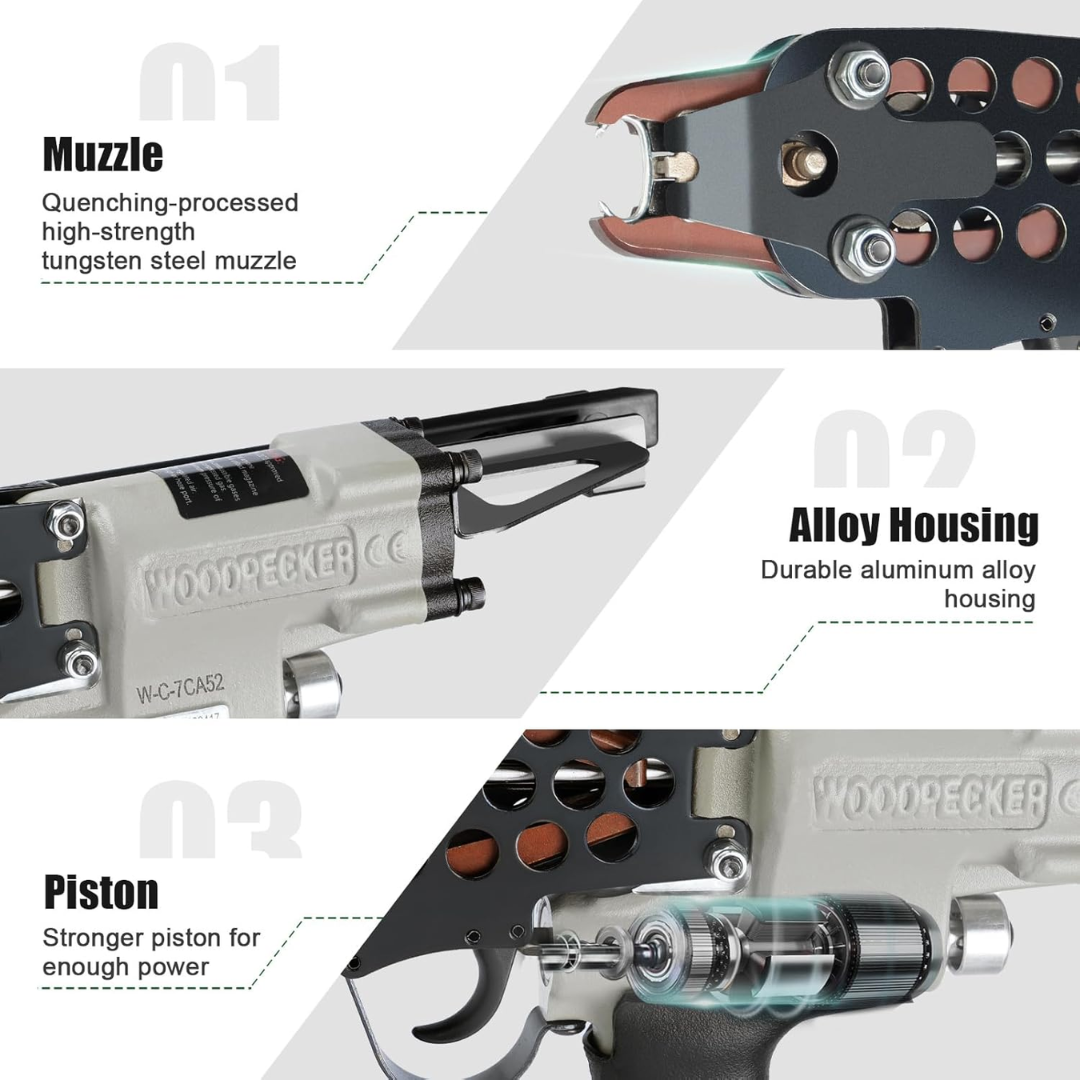 Pistola neumática profesional diseñada para el uso de grapas tipo C (C-RING SC-6). Ideal para trabajos de fijación firme, rápida y continua, optimizando tiempos y reduciendo el esfuerzo del operario.
