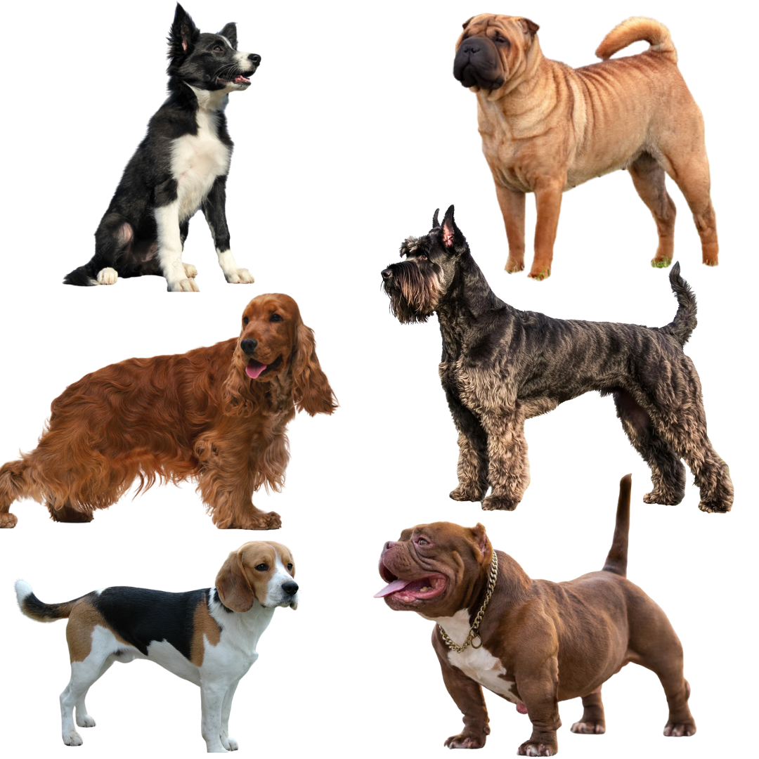 Cocker Spaniel grande – Beagle adulto – Bulldog Francés – Schnauzer mediano/grande – Border Collie juvenil – Perro peruano mediano – Poodle mediano – Shar Pei joven – Setter – Bull Terrier mediano – Mestizos de 15 a 30 kg.