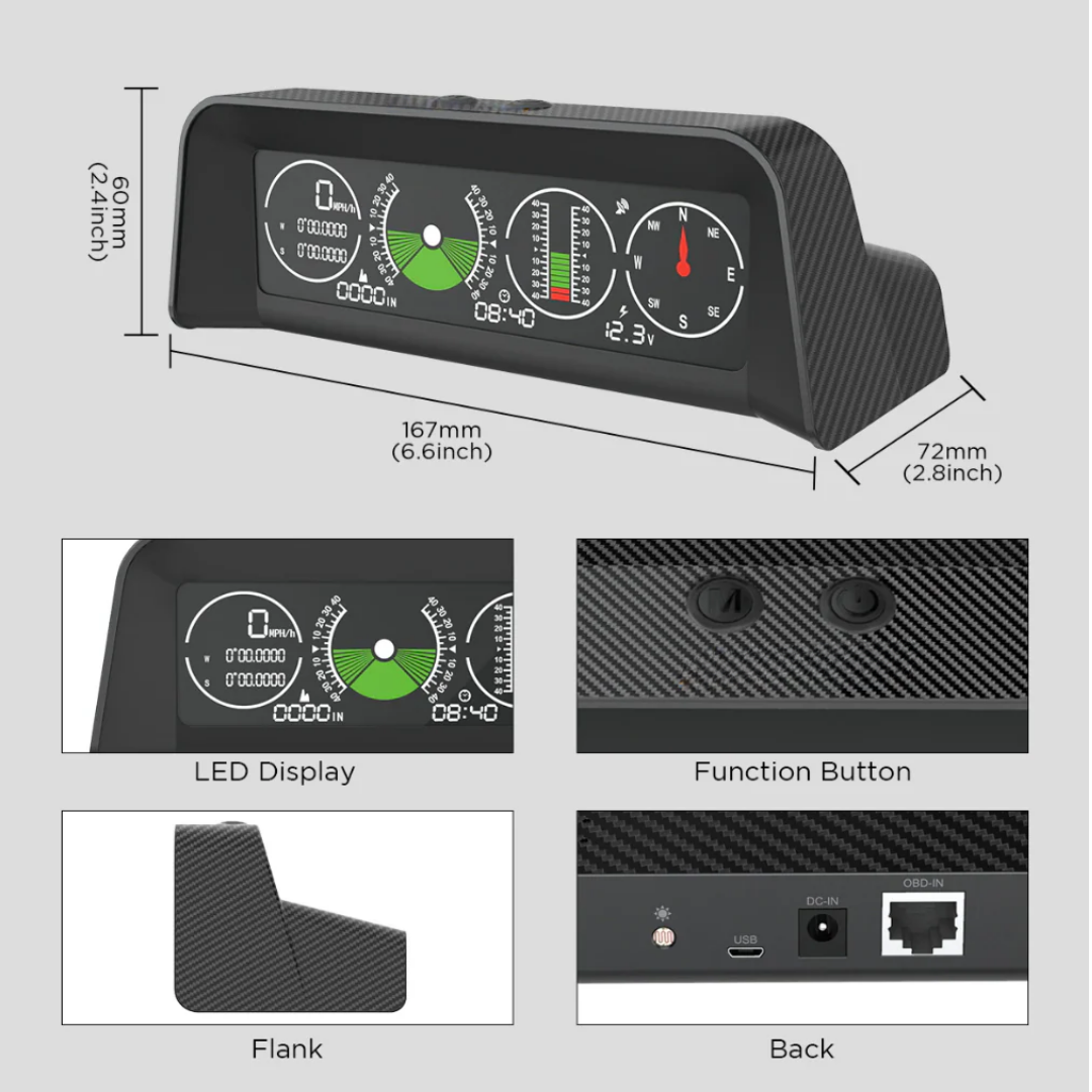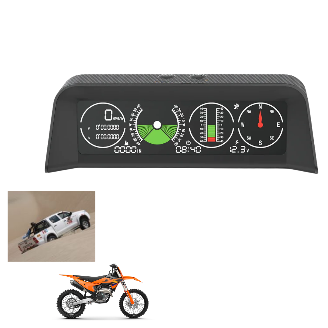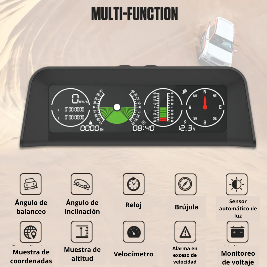 Equipo diseñado para conductores que necesitan seguridad, precisión y control en campo o carretera. Mide velocidad real por GPS, inclinación del vehículo, orientación, voltaje y más. Ideal para transporte de ganado, maquinaria agrícola, vehículos 4×4, camionetas de faena y rutas de montaña.